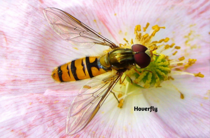 8. Hoverfly - Hoverflies mimic bees in appearance but are harmless and efficient pollinators. They are particularly drawn to open, flat flowers like daisies, alyssum, and marigolds. They also help control aphids, making them double-duty garden allies.