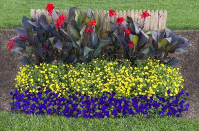 Repeating the same color or plant type throughout the garden prevents bold hues from feeling scattered.