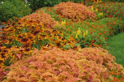 - High contrast pairings—dark foliage against vivid blooms or lime-green leaves against deep purples