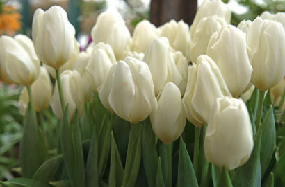 • Tulips (‘Purissima’ or other ivory varieties) – These early spring classics provide refreshing simplicity after winter’s gray.