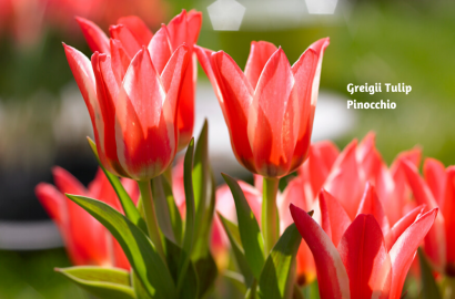 Greigii tulips, a captivating variety of tulips, are known for their bowl-shaped flowers and unique foliage. With their striped leaves and vibrant blooms, they stand out in any garden. The flowers bloom early to mid-spring making them one of the early bloomers. Originating from Central Asia, these tulips are well-suited to a range of climates, making them a popular choice for gardeners seeking both elegance and resilience.