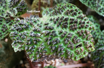 Begonia ferox looks like something from a fairytale gone wrong. Its thick, textured leaves are covered in dramatic black spikes that give it a menacing, troll-like appearance. This rare Begonia is an absolute conversation starter—and the perfect villain in your botanical Halloween cast.