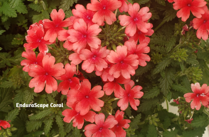 Firehouse Peppermint verbena is a true showstopper with its crisp red-and-white striped petals. The high-contrast pattern adds a lively, almost festive feel wherever it’s planted. For a more understated look, EnduraScape Coral verbena offers warm coral tones with gentle patterning that blends beautifully with both bold and neutral color schemes.