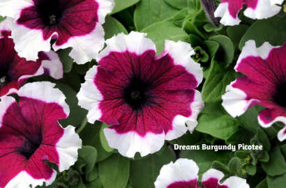 Petunias take patterned petals to another level. Night Sky Headliner petunia is famous for its cosmic appearance—rich purple blooms scattered with white speckles that truly resemble a star-filled sky. It’s especially striking in evening gardens or paired with silvery foliage. Amazonas Plum Cockatoo petunia brings an exotic twist, blending plum and light green tones with feathered, almost painterly patterns that feel tropical and unexpected. For a more classic look, Dreams Burgundy Picotee petunia delivers elegance with its deep burgundy petals crisply edged in white, perfect for formal containers or symmetrical plantings.