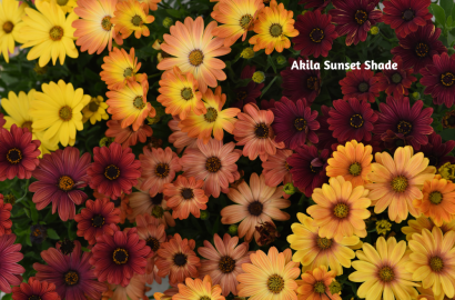 Akila Sunset Shade osteospermum lives up to its name with warm hues that shift from golden yellow to soft pinks and oranges, mimicking the glow of a sunset. It’s ideal for creating warmth in garden beds or complementing earthy tones. On the softer side, Osticade Aurora osteospermum showcases delicate pastel shades with a radiating pattern that draws the eye inward, adding subtle sophistication to mixed plantings.