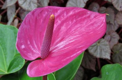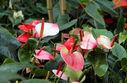 Anthurium, commonly called Flamingo Flower or Painter’s Palette, is a striking tropical perennial prized for its glossy, heart-shaped leaves and vibrant, long-lasting “flowers,” which are actually colorful modified leaves called spathes surrounding a central spike known as a spadix. Anthuriums are native to the warm, humid rainforests of Central and South America, where they grow as both terrestrial plants and epiphytes clinging to trees. Their true flowers are tiny and packed along the spadix, blooming year-round under favorable conditions, with spathes appearing in brilliant shades of red, pink, white, green, purple, and even bi-color varieties. To grow Anthurium successfully, provide bright, indirect light; warm temperatures between 65–80°F; and a well-draining, chunky potting mix rich in organic matter, similar to an orchid or aroid blend. They are grown from starter plants or divisions, as seeds are slow and difficult to germinate. Commonly used as houseplants, tabletop accents, or greenhouse specimens, they bring a tropical feel to indoor spaces. Care includes keeping the soil lightly moist but never soggy, maintaining high humidity, fertilizing monthly during the growing season, and repotting every couple of years to refresh the soil. Hardy outdoors only in USDA Zones 10–12, Anthuriums are mostly grown indoors in the US, and an interesting fact is that each colorful spathe can last up to two to three months, making them one of the longest-lasting indoor “flowering” plants available.